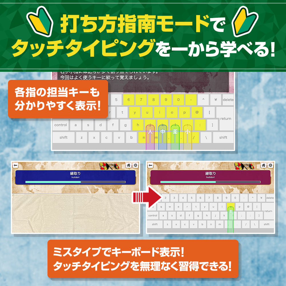 初心者から上級者まで、幅広い難易度で学べるタイピングゲーム! 【バッカリ打モード】タイプ練習をしながらギャグ短編が読めるモード 【打ち方指南モード】解説と練習パートで無理なくタッチタイピング習得 【タイプ修行モード】速度/正確性/特殊記号に分野特化した6つのモード 【超絶技巧モード】中級者以下お断りの超難易度。目指せ最高評価!